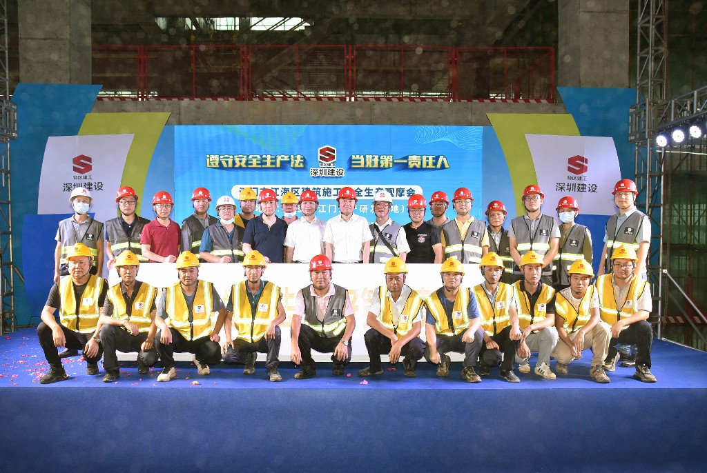 6月12日,江門市江海區(qū)建筑施工安全生產(chǎn)觀摩現(xiàn)場會(huì)在建設(shè)集團(tuán)承建的金多多江門生產(chǎn)研發(fā)基地項(xiàng)目舉行。江門市江海區(qū)住建局總工程師彭潔蕓、江門建筑業(yè)協(xié)會(huì)代理秘書長譚榮錚,阿麥斯江門金多多生產(chǎn)研發(fā)基地項(xiàng)目總經(jīng)理馬紅帆、副總經(jīng)理王曉琴,深圳建設(shè)集團(tuán)黨總支副書記石宏偉、副總裁李蕃榮、安全總監(jiān)余南華等出席活動(dòng)。